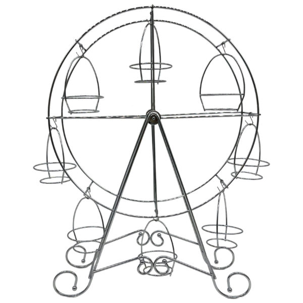 Elevate your dessert presentation with the 12" x 15.5" Ferris Wheel 8 Cupcake Silver Server, a charming and functional centerpiece for any celebration. This silver server brings a touch of whimsy to your dessert table, featuring a Ferris wheel design that gracefully displays eight cupcakes in a delightful and eye-catching arrangement. Crafted with meticulous attention to detail, the server adds a touch of elegance to your special occasions. The sturdy construction ensures stability while the rotating feature adds an interactive element to your event. Ideal for birthdays, weddings, or any festive gathering, this Ferris Wheel Cupcake Server is not just a serving accessory but a conversation piece that adds a unique and festive flair to your dessert presentation. Let the Ferris Wheel Cupcake Server be the highlight of your dessert table, turning every moment into a delightful and memorable experience.,12" x 15.5" Ferris Wheel 8 Cupcake Silver Server,