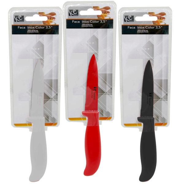 Enhance food preparation with the 3.5" Stainless Steel Blade Paring Knife, available in an assortment of colors: all white, black, and red. This versatile paring knife features a sharp stainless steel blade designed for precise cutting, making it ideal for peeling, trimming, and intricate slicing tasks. The ergonomic handle, crafted from durable colored PP, ensures a comfortable and secure grip, allowing for greater control and ease during use. Perfect for everyday kitchen tasks, this paring knife combines functionality with a pop of color, making it an essential tool for any home cook. It comes packaged loose with a hanging clamshell protecting the blade. The approximate measurements with packaging are 3" x 10.5".,3.5" Stainless Steel Blade Paring Knife in Assorted Colors,