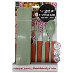 Enjoy meals on the go with this convenient BPA-free cutlery set, featuring a fork, knife, spoon, and a compact storage case. Designed for portability, this green-colored set is perfect for travel, camping, picnics, or everyday use. The sturdy and durable set is reusable, helping to reduce waste from disposable cutlery. The storage case keeps the fork, knife, and spoon clean and organized, making it easy to carry in bags or lunchboxes. Ideal for eco-conscious consumers looking for a sustainable and stylish dining solution. Comes packaged with a hanging tie card. The Package measures approximately 6.5" x 11". ,Portable Cutlery Set with Storage Case,