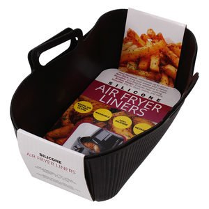 This 2-pack of rectangle heat-resistant silicone liners enhances air frying convenience and keeps appliances clean. Made from 100% high-quality silicone, each liner withstands temperatures up to 446°F and features a non-stick surface for hassle-free cooking and cleaning. Reusable and washable, these liners provide an eco-friendly alternative to disposable options. The added convenience of two built-in handles ensures easy access and safe handling, making removing food from the air fryer effortless. Perfect for maintaining a spotless air fryer, these liners offer a practical solution for mess-free and efficient cooking. Ideal for: Frying, roasting, and baking. Dishwasher safe. Liners measurements are 3.75" x 6.25", depth: 2". Comes packaged in a hanging sleeve card.,2 Pack Rectangle Heat Resistant Air Fryer Silicone Liners,
