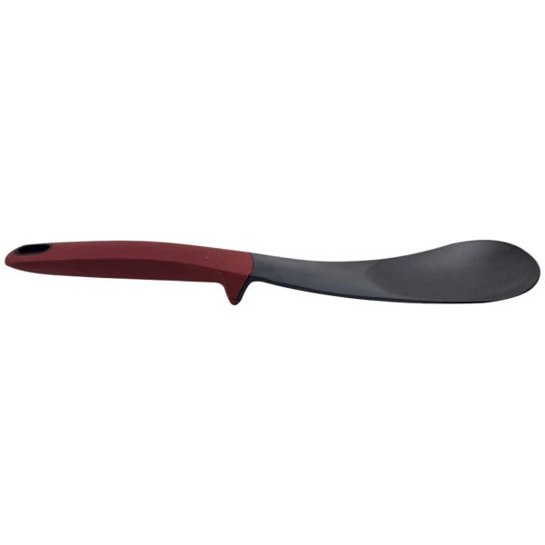 The 12.25" Serving Spoon is a practical and stylish addition to any kitchen, featuring a built-in mini stand that keeps it slightly elevated on countertops, stoves, pots, or pans to prevent mess. With heat resistance up to 400 Fahrenheit degrees, this spoon is perfect for serving soups, stews, casseroles, and more. It also includes a convenient hole at the handle's end for easy hanging and organized storage. Comes in assorted colors, red and gray, and is packaged with a hang tag.,12.25" Serving Spoon,