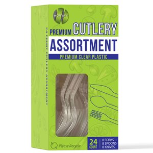 Worthy 24 Piece Premium Clear Plastic Cutlery Assortment Worthy 24 Piece Premium Clear Plastic Cutlery Assortment Worthy 24 Piece Premium Clear Plastic Cutlery Assortment