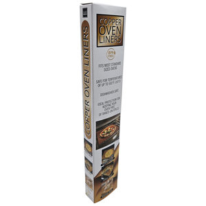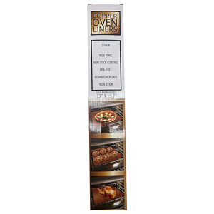 The 13" x 15.7" 2 Pack Copper Oven Liner is a versatile and durable kitchen essential designed to keep ovens clean and cooking surfaces protected. Made with a non-toxic, non-stick coating, these liners are BPA-free and dishwasher safe for easy cleaning. They can be used as an oven liner, grill mat, or baking mat, providing a reusable and eco-friendly alternative to foil or parchment paper. Designed to fit most standard-sized ovens, they effectively catch spills, drips, and crumbs, reducing the need for scrubbing and extending the life of oven interiors. With a heat resistance of up to 500°F, these liners ensure safe and even cooking while preventing food from sticking. Ideal for baking, roasting, or grilling, they offer a mess-free and hassle-free cooking experience. The set comes packaged in a color shelf box. The Package measures approximately 2.25" x 1.25" x 13.30".,13" x 15.7" 2 Pack Copper Oven Liner,