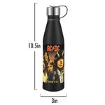 Rock your hydration game with the AC/DC Highway to Hell 17 oz Stainless Bottle, featuring a bold design inspired by the legendary album cover art. This bottle showcases the iconic AC/DC logo and band imagery in vivid detail across a sleek matte black exterior, making it a standout for fans of classic rock. Measuring 10.5 inches tall and 3 inches in diameter, it fits easily into most cup holders and backpack pockets. Made from durable stainless steel with a secure screw top lid and a secured silicone loop for carrying or attaching to a bag, this reusable bottle is perfect for keeping drinks hot or cold while channeling your inner rock star.,AC/DC Highway To Hell 17 Oz Stainless Bottle,