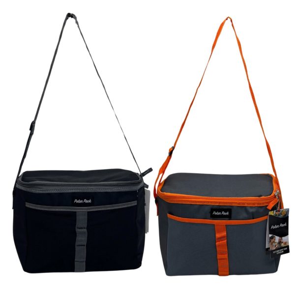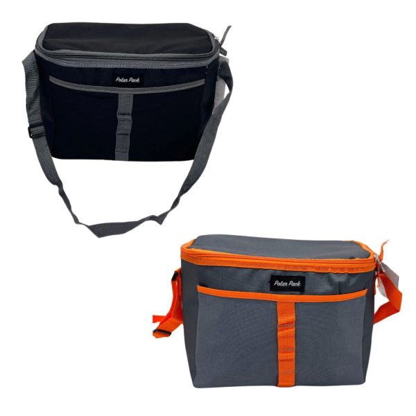Keep food and drinks cool and fresh on the go with the Polar Pack 12 Can Soft Side Cooler, available in 2 assorted color combinations. Designed for maximum convenience, this cooler features a large insulated main compartment that easily accommodates up to 12 cans, a secure top zipper closure to maintain temperature, and a front mesh pocket ideal for holding utensils or snacks. Its adjustable shoulder strap ensures comfortable carrying, making it perfect for lunches, beach trips, picnics, or workdays. With its durable build and stylish two-tone design, this cooler combines functionality with modern appeal.,Polar Pack 12 Can Cooler in Assorted Colors,